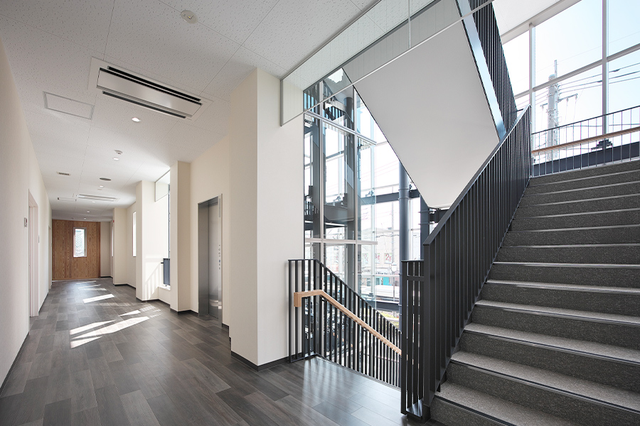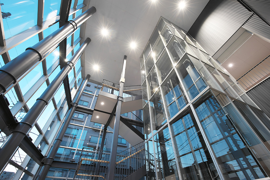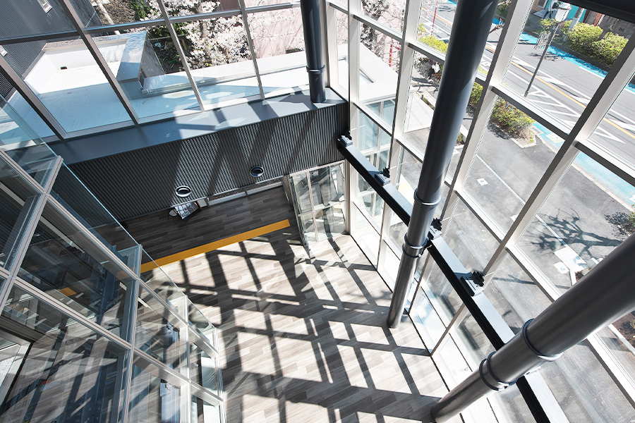 草加商工会議所では、様々な商工業振興施策を実現するため、また災害発生時に市内経済活動の維持、早期回復をさせるため新たな時代に向けた建替え工事を実施しました。防災機能と地域交流機能を併せ持った、環境配慮型の新産業拠点をコンセプトに計画されました。